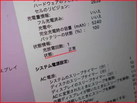 MacBookは設定上でバッテリーの劣化具合を確認できます。